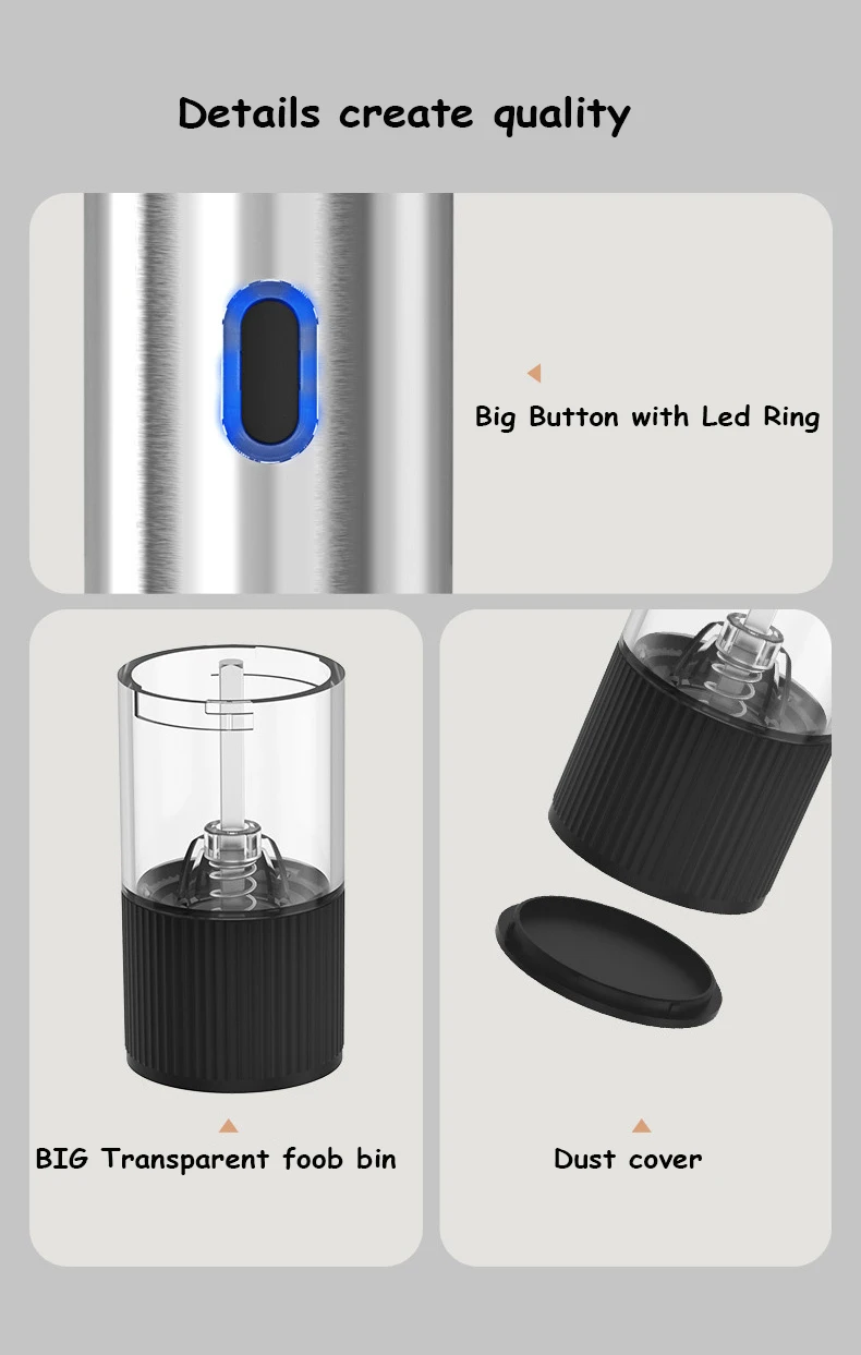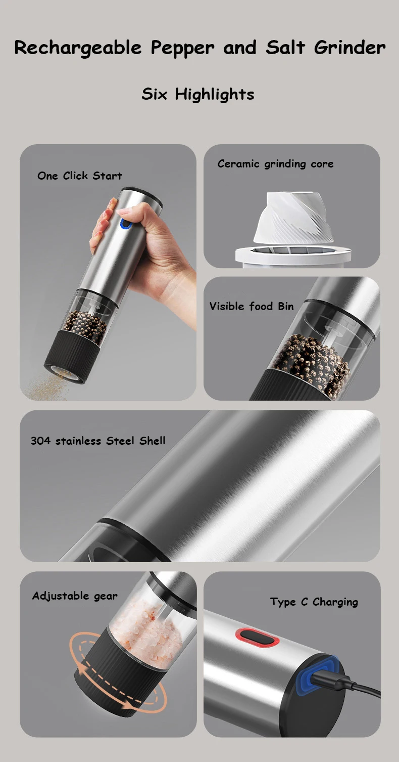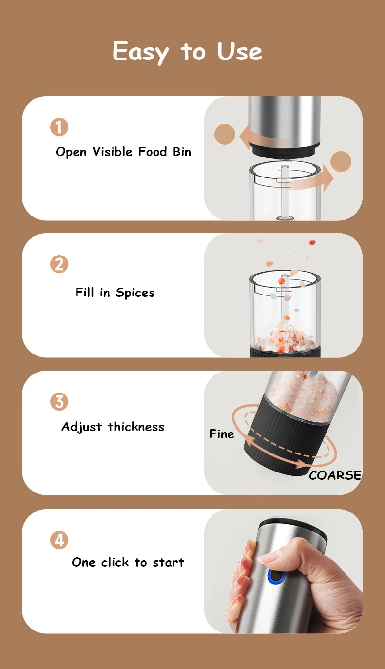 ā” One-Touch Automatic Grinding: Effortless operation for quick seasoning while cooking or serving.