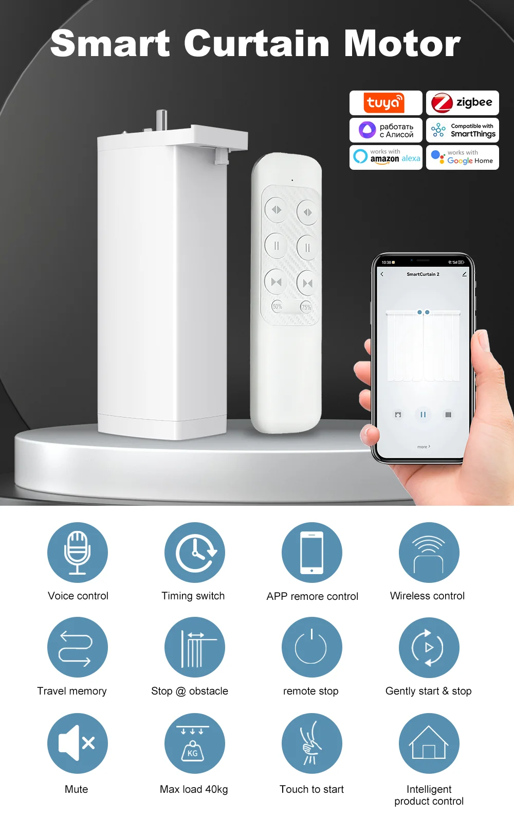 Zigbee / WiFi Electric Curtain Motor • App, Remote & Voice Control • Ultra-Quiet Design